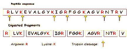- trypsin breaks the peptide bond of lysine and arginine.